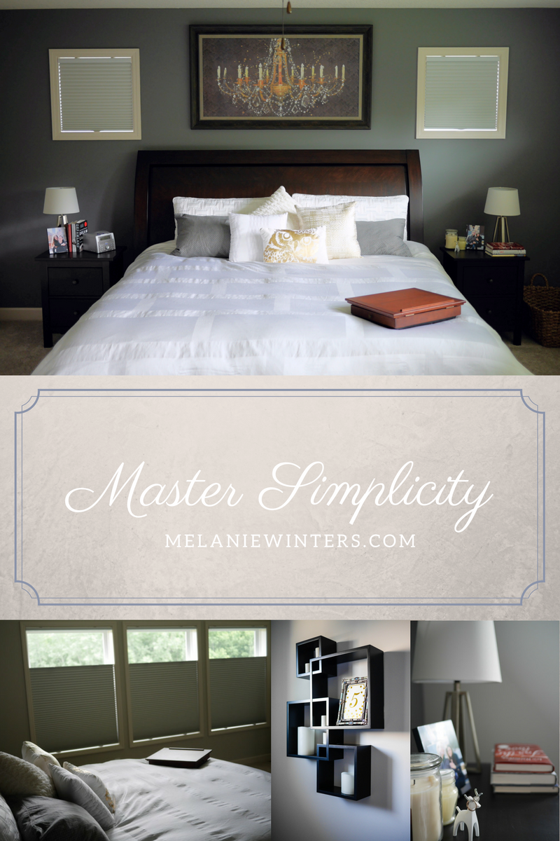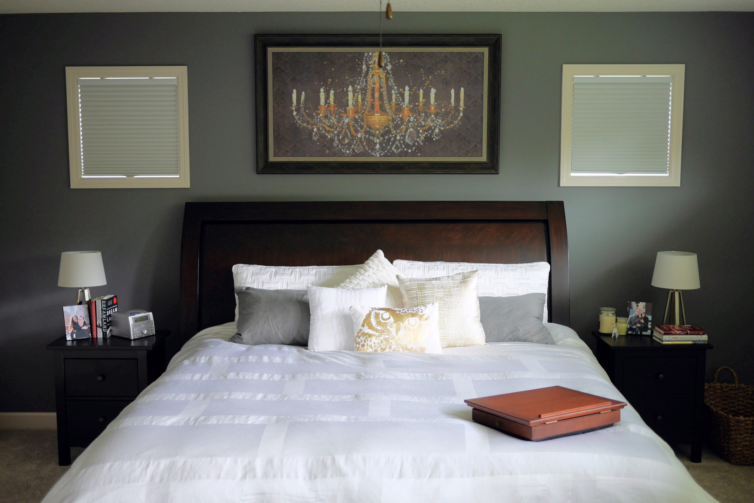 No matter what your design style, when tackling your master bedroom my tip to you is less is more. Pick one or two focal points (the wooden king bed and chandelier artwork in our room) and simplify the rest. Keep the clutter out, you want a sanctuary to sleep and wake-up in, not something that is going to overstimulate the senses and make it difficult to relax. Use pillows and rugs to incorporate color and texture but don't over-do it, keep things practical and useful. There's something to the old "form follows function" train of thought, but who says you can't balance both?